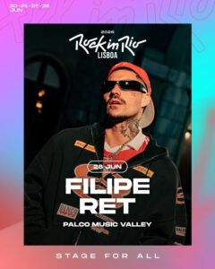 Um dos principais nomes da cena do rap e trap nacional, Filipe Ret se prepara para estrear no Rock in Rio Lisboa 2026 como headliner do Palco Music Valley no dia 28 de junho celebrando a sua turnê ‘Nume’, com um show que promete impactar os espectadores em uma explosão de ritmos urbanos.