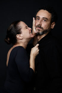 A peça se constrói como um confronto direto entre Medeia e Jasão, interpretados por Carolina Pismel e Paulo Verlings, que atravessam diferentes registros de atuação e linguagem. Ao mesmo tempo em que encarnam as figuras centrais do mito, também desdobram outras presenças – como o rei Creonte – sem recorrer a marcações fixas, fazendo do próprio jogo cênico um campo de instabilidade e transformação. Para o diretor Paulo de Moraes, “o meu grande desafio junto aos atores é manter sempre pulsante essa troca constante entre contar e viver a história de Medeia e Jasão, proposta no texto”.